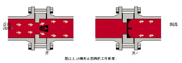 圖12.3.14 蝶形止回閥的工作原理