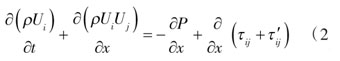 湍流被認(rèn)為是具有不規(guī)則旋轉(zhuǎn)的高度復(fù)雜的三維非定常流動。使用標(biāo)準(zhǔn) k-ε 湍流模型,基本控制方程主要由連續(xù)性方程和 Navier-Stokes 方程組成。 連續(xù)性方程[12]可以寫成: