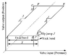 閥門粘滯指的是閥門在運(yùn)行一段時(shí)間后,由于閥桿與填料之間產(chǎn)生較大的靜摩擦,從而引起的非線性故障。在當(dāng)今系統(tǒng)作業(yè)中,大部分控制回路的計(jì)算方法還是采用傳統(tǒng)的 PID 控制計(jì)算法。而在 PID 控制回路中,需要控制器花費(fèi)較多的時(shí)間進(jìn)行反復(fù)調(diào)節(jié)才能使得其達(dá)到一定的設(shè)定的狀態(tài),在這個(gè)過(guò)程中,控制器會(huì)不斷的改變方向。當(dāng)有氣動(dòng)調(diào)節(jié)閥的回路上有粘滯故障時(shí),控制器就會(huì)改變方向,而閥門就會(huì)進(jìn)一步發(fā)生粘滯現(xiàn)象。而這種情況一直會(huì)延續(xù)到控制器的輸出大于某個(gè)數(shù)值(S)時(shí),閥桿才會(huì)產(chǎn)生為某個(gè)(J)大小的跳動(dòng)(參照下圖)。在這個(gè)無(wú)法估摸的過(guò)程中,調(diào)節(jié)量產(chǎn)生偏差則是在所難免的。而為了消除這個(gè)偏差,控制器就會(huì)再次發(fā)生改變,粘滯故障便會(huì)再次發(fā)生,最終導(dǎo)致了控制變量在以設(shè)定的值的上下來(lái)回波動(dòng)震蕩。因此 PID 是引起數(shù)值震蕩的主要原因。