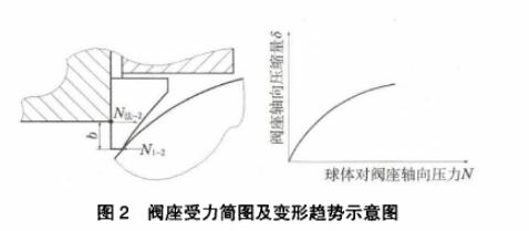 (1)、介質未加載前。閥門在安裝預緊間隙下,設球體受左右閥座的正壓力分別為N2一為1,弘1 0 1 安裝后左閥座的實際軸向壓縮量,為安裝后右閥座的實際軸向壓縮量,因為,左右閥座性能尺寸相同,所以《:《球體兩側的總預緊壓力為N2一汁咗1。 《(櫞D的值可通過該批次的閥座受力變形曲線來確定。 (2)、介質壓力加載后。假設此時球體受左右閥座的正壓力為 六N,介質對閥球的有效作用力為N介',如閥座的變形曲線為線性,則N2一[ ':N2司介'/2,蘇《':汁介'/2。球體兩側的總預緊壓力[ '+N2一在N2一汁咗1,表明如閥座的軸向變形是線性的,介質加載后總預緊壓力不變。實際上閥座的變形是非線性的,此時 '為:一介'/2+A,3:啊+庳介' /2 +ANO實際球體兩側總的預緊壓力1 ' ':汁櫞汁2A如右閥座為剛性體, 2AN為最大值,此時2厶№庳介'。表明油于閥座的軸向變形是非線性的,介質加載后總預緊壓力會比初始安裝預緊力增加2厶N, 2A由閥座非線性變形協(xié)調引起,其值在0(線性)和庳介'(剛性)之間,只要確定N的曲線,即可推算出較為正確的A值。其中 ' 介 等于介質對球體的直接作用力庳介加上介質對左閥座的作用力傳遞給球體的分量,計算公式介'介+0•5一)/4: 2/4 •5×P“(2一2)/4。