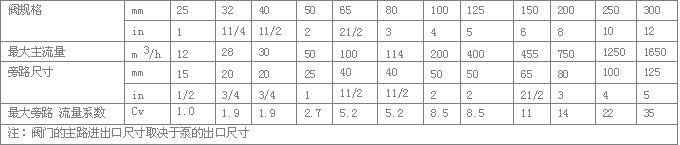 其它旁路尺寸可按要求制作;最大的旁路流量取決于最大的Kv值